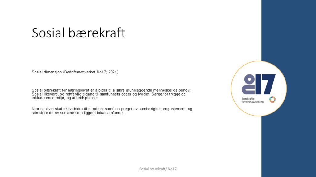 Nosytten-nettverket har definert sosial bærekraft som næringslivets ansvar og mulighet til å sikre likeverd, rettferdig tilgang og trygge, inkluderende fellesskap – og som en aktiv kraft for engasjement, samhørighet og styrking av lokalsamfunnet.